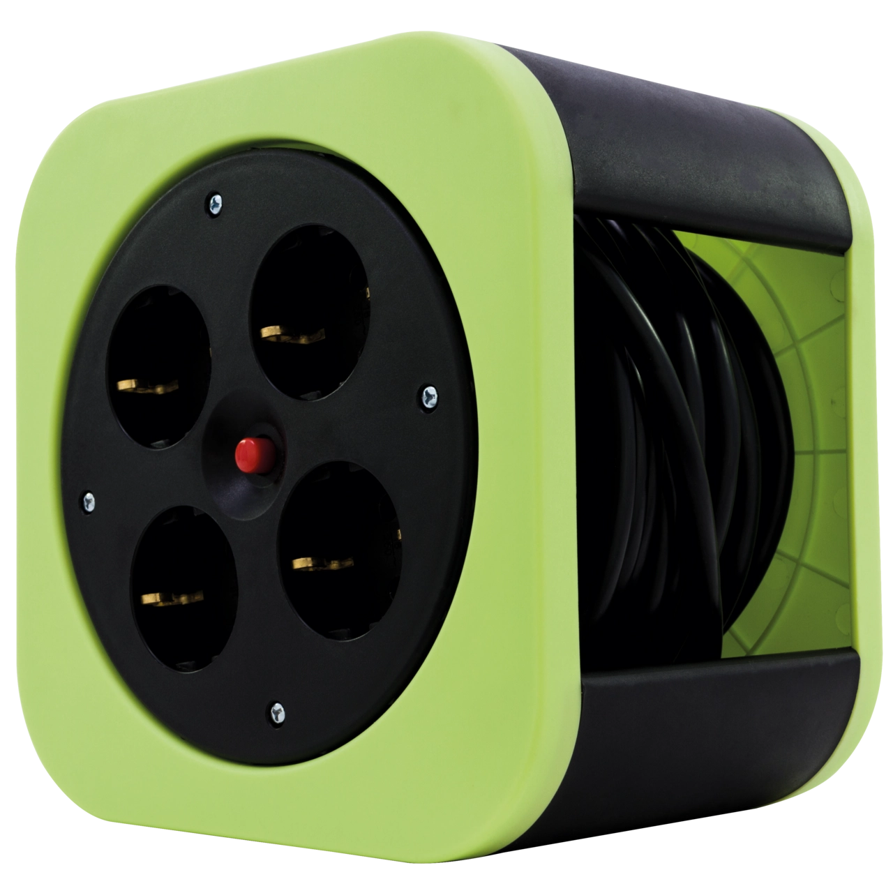Handliche Kabelbox - für eine flexible und sichere Stromverteilung im Haus. Die leichte Kabelrolle mit 10 m Verlängerungskabel bietet ein stabiles, kompaktes Gehäuse aus schlagfestem Spezialkunststoff. Eine sichere und zuverlässige Anwendung wird durch den integrierten Überhitzungsschutz gewährleistet. Die handliche, mobile Kabelbox lässt sich leichtgängig auf- und abrollen. Alle Steckdosen sind mit erhöhtem Berührungsschutz ausgestattet. Der kompakte Haushalts-Stromverteiler ist für Arbeiten mit mehreren elektrischen Geräten im Innenbereich geeignet. Ein großer Arbeitsradius wird durch die hochwertige Kunststoffleitung ermöglicht.