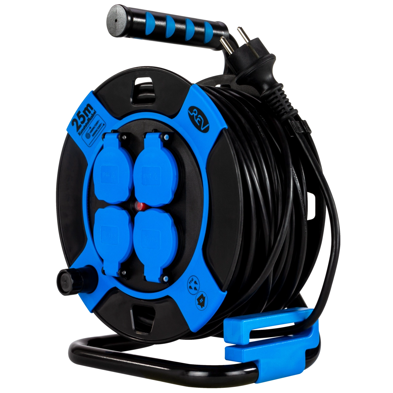 Kabeltrommel - für eine flexible und sichere Stromverteilung im und ums Haus. Die robuste Kabeltrommel bietet einen stabilen, standsicheren Metallständer mit einem federnd gelagertem Trommelkörper aus schlagfestem Spezialkunststoff, wodurch eine langlebige Nutzung gewährleistet wird. Die mobile Stromversorgung lässt sich leichtgängig auf- und abrollen und durch den integrierten Überhitzungsschutz sicher und zuverlässig anwenden. Der mit vielen nutzerfreundlichen Extras ausgestattete Stromverteiler ist für Arbeiten mit mehreren elektrischen Geräten im Innen- und Außenbereich geeignet. Ein großer Arbeitsradius wird durch die hochwertige Kunststoff-Leitung ermöglicht. Anspruchsvolle Qualität und sorgfältige Verarbeitung - die Kabeltrommel von REV Ritter für den Privat- und Profi-Handwerker.