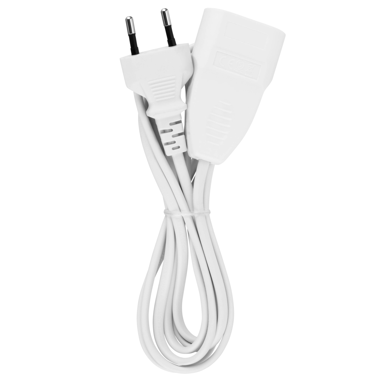 Euro-Verlängerung für eine flexible und sichere Stromverbindung Ihrer elektrischen Geräte im Haushalt. Die Verlängerungsleitung bietet eine 2 m lange wertige Kunststoff-Leitung mit stabilem Euro-Stecker auf der einen und eine Euro-Kupplung auf der anderen Seite. Die Schutzkontakt-Kupplung ist zur Sicherheit mit einem erhöhten Berührungsschutz ausgestattet. Elastisches Stromkabel in verschiedenen Längen - zum einfachen Überbrücken von Abständen zwischen Steckdosen und Elektrogeräten mit einer Belastbarkeit bis 580W.