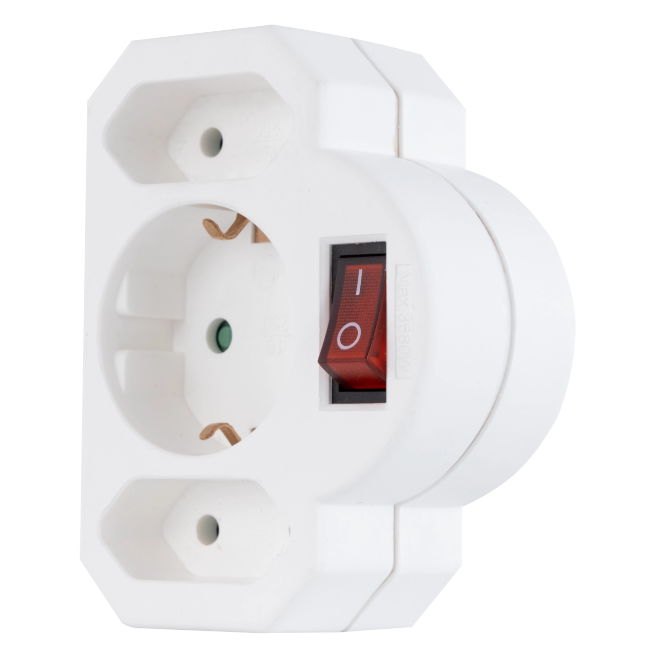 Aus 1 mach 3 - der praktische Steckdosenadapter zum einfachen Erweitern Ihrer Steckdose. Der 3-fach Adapter in sehr kompakter Bauform mit beleuchtetem Schalter, einer Schutzkontakt und zwei Euro-Steckdosen lässt sich einfach in eine übliche Steckdose stecken.