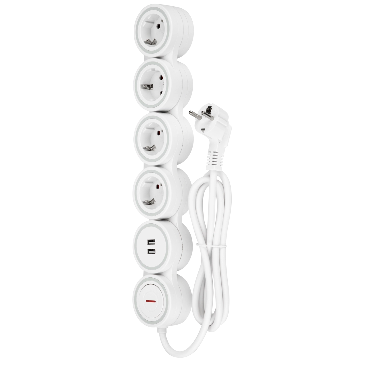 Formbare Steckdosenleiste SupraFlex für eine flexible und sichere Stromversorgung von bis zu 4 elektrischen Geräten im Haus oder in der Wohnung. Durch die spezielle Bauform können Sie die Steckdosenleiste nach Ihren Wünschen biegen - individuell dem jeweiligen Einsatzort anpassen. Über die zwei zusätzlichen USB Steckdosen können Sie einfach Ihre elektrischen Geräte wie z.B. Handy, Smartphone, Tablet, Laptop, MP3-Player, Digitalkamera, etc. aufladen. Der flexible Stromverteiler mit 1,4 m Kunststoffleitung bietet ein stabiles und bruchfestes Gehäuse aus hochwertigem Kunststoff. Alle Steckdosen sind zur Sicherheit mit einem erhöhten Berührungsschutz ausgestattet und eignen sich durch die quersitzende Bauform auch für elektrische Geräte mit Winkelstecker und großen Netzteilen. Über den integrierten, zweipoligen Ein-/Ausschalter können Sie die angeschlossenen Verbraucher sicher vom Netz trennen.