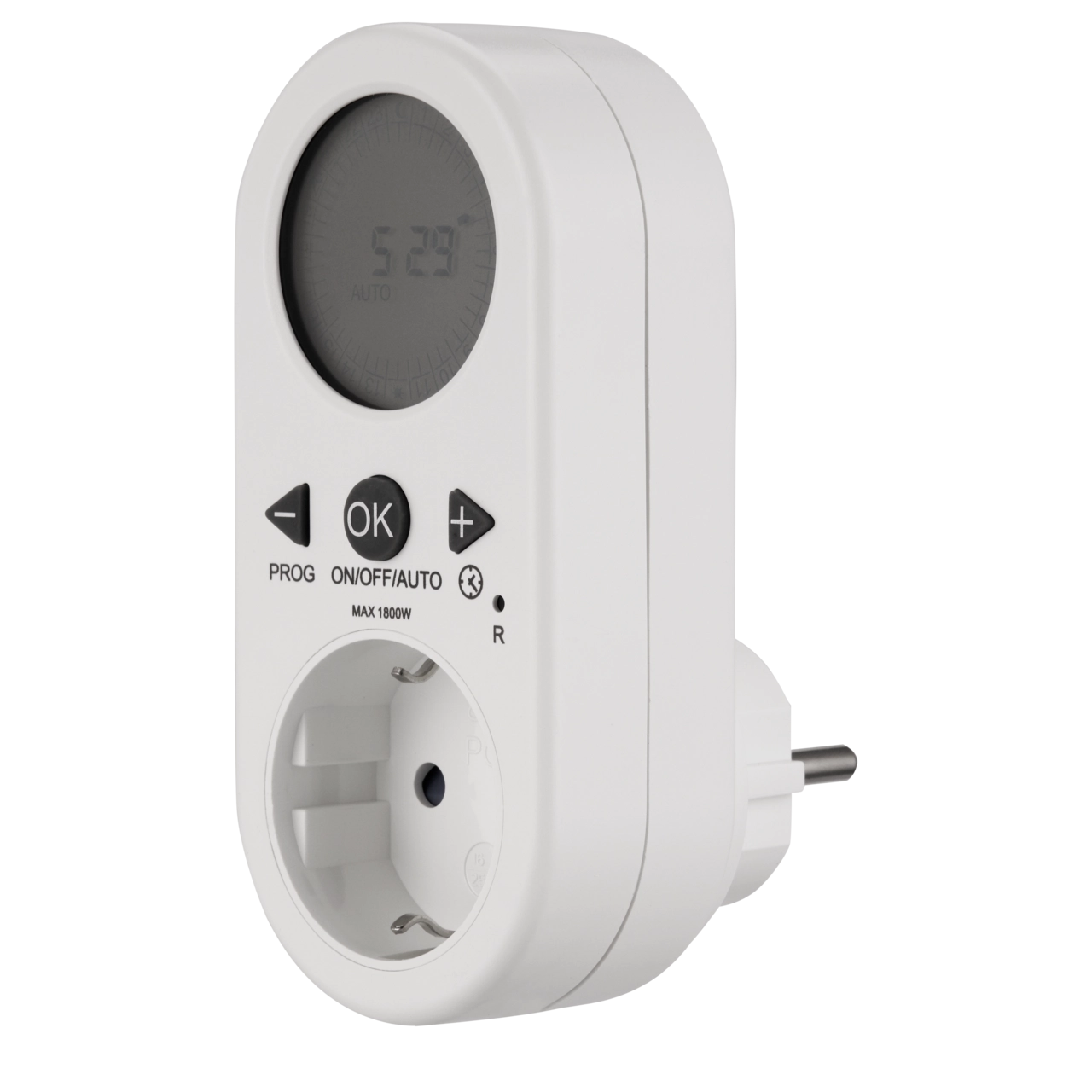 Die praktische Zeitschaltuhr Easy mit digitaler Technik eignet sich ideal zum automatischen und effizienten steuern Ihrer elektrischen Geräte wie z.B. Tisch- und Stehlampen, Kaffeemaschinen, Aquarien oder Terrarien, Rollladen und Jalousien, Ventilatoren, Klimageräte, elektrische Heizungen, Zirkulationspumpe, Weihnachtsbeleuchtungen etc.. Sparen Sie Strom und Geld mit dem sinnvollen Einsatz der digitalen Zeitschaltuhr durch Abschaltung von stromverbrauchenden Stand-by Funktionen, Nachtabschaltung verschiedener elektrischer Verbraucher oder zeitlich geplante Steuerung von Elektrogeräten wie z.B. Waschmaschine, Trockner oder andere. Die digitale Schaltuhr punktet durch Ihre recht einfache Handhabung, ähnlich einer mechanischen Zeitschaltuhr. Für einen Tag können Sie bis zu 48 täglich wiederholende Schaltzeiten einstellen, der kleinste Schaltabstand ist hierbei 30 Minuten. Außerdem ist ein Akku integriert, der die Speicherung Ihrer Einstellungen auch bei Stromausfall bis zu 100 h sicherstellt. Die Uhr bietet eine zuverlässige Zeitsteuerung in einem kompakten und stabilen Kunststoffgehäuse. Die Steckdose ist zur Sicherheit mit einem erhöhten Berührungsschutz ausgestattet.