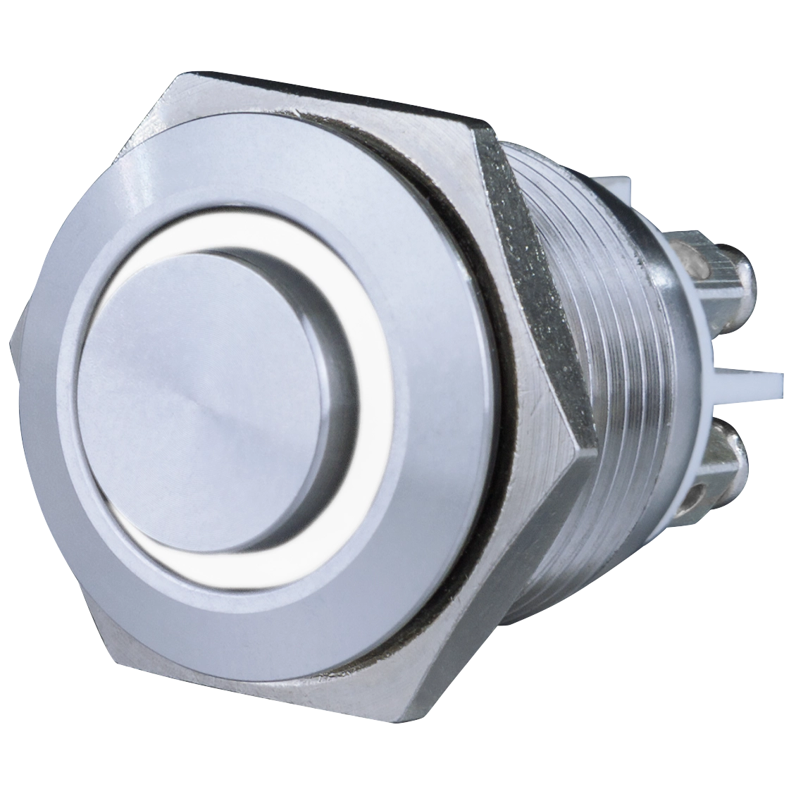 Der Einbau-Klingeltaster ist für alle fest verdrahteten Klingelanlagen bis maximal 12V/1,5A geeignet. Er kann in bestehende Klingelplatten mit einer Plattenbohrung von 16mm, einer Plattenstärke von 9mm und einer Einbautiefe von 22,5mm eingebaut werden. Die LED Beleuchtung gewährleistet, dass der Taster auch bei Dunkelheit gefunden werden kann. Mit Hilfe der Schraubkontakte lässt sich der Klingeltaster besonders schnell und problemlos montieren.