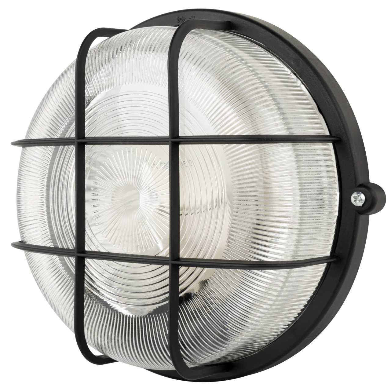 • BAUART - bewährte Wand- und Deckenleuchte in runder Bauform mit Echtglas-Abdeckung und Kunststoff-Schutzkorb für den Innen- oder Außenbereich, Abmessung (LxBxH): 200 mm x 200 mm x 105 mm