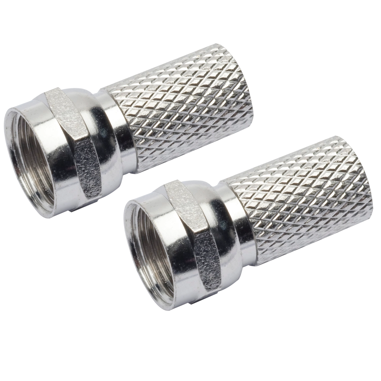 Solide F-Stecker mit Schraubanschluss für Antennenkabel (DVB-S - Digitales Satellitenfernsehen). Die Stecker sind aus massivem Metall, geeignet für die Anwendung im Innen- und Außenbereich.