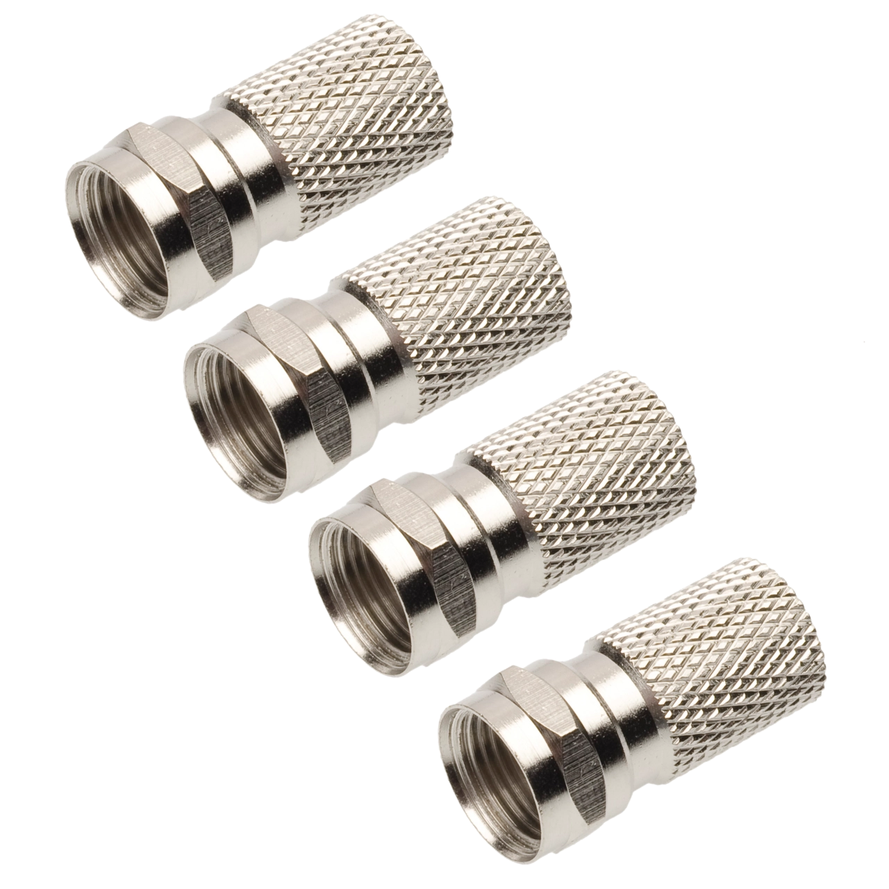 Solide F-Stecker mit Schraubanschluss für Antennenkabel (DVB-S - Digitales Satellitenfernsehen). Die Stecker sind aus massivem Metall, geeignet für die Anwendung im Innen- und Außenbereich.