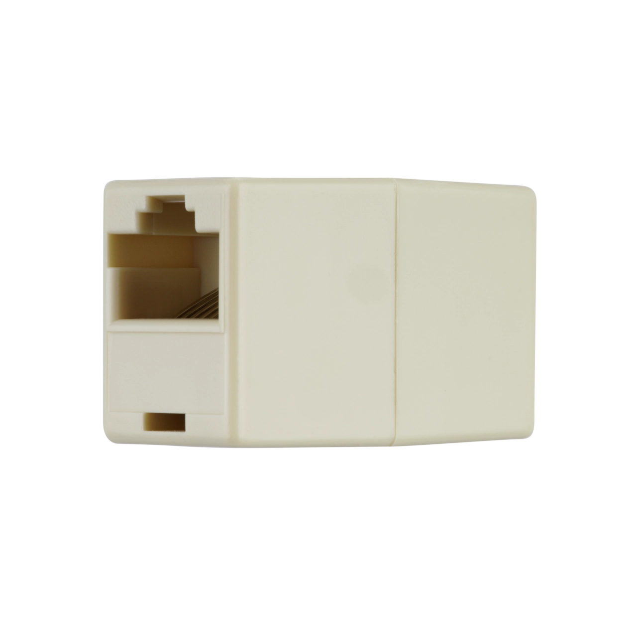 Netzwerk-Verbindungsadapter zum verbinden von Netzwerkkabel mit RJ45 Stecker. Der Adapter bietet ein kompaktes und stabiles Gehäuse aus Kunststoff, geeignet für die Anwendung im Innenbereich.