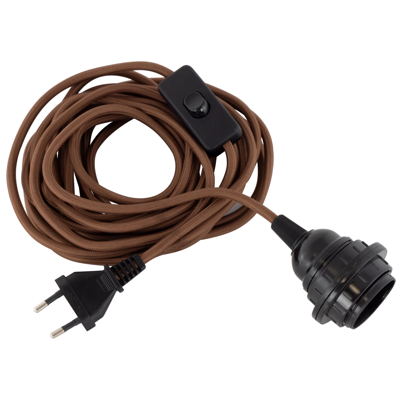 • KOMPLETT: anschlussfertig mit 2-adriger Leitung 6m, Euro-Stecker und Kunststoff-Fassung E27 mit Schraubring zur Befestigung von Lampenschirmen
