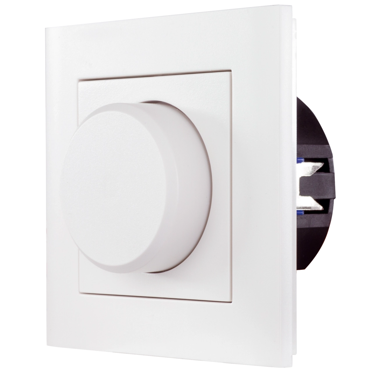 Praktischer Dimmer für Unterputz-Montage mit zuverlässiger Technologie zum Dimmen von Lampen und Leuchten. Für jede Stimmung das passende Licht - steuern Sie die Helligkeit Ihrer Leuchten stufenlos mit dem intelligenten Dimmer. Der Helligkeitsregler ist für den Einbau in eine übliche Schalterdose konzipiert und eignet sich zur flexiblen Lichtsteuerung mit modernen, dimmbaren LED Leuchten genauso wie bewährten Glüh- oder Leuchtstofflampen. Der Dimmer hat eine integrierte Lasterkennung und stellt sich damit automatisch auf die jeweils angeschlossene Leuchte ein.