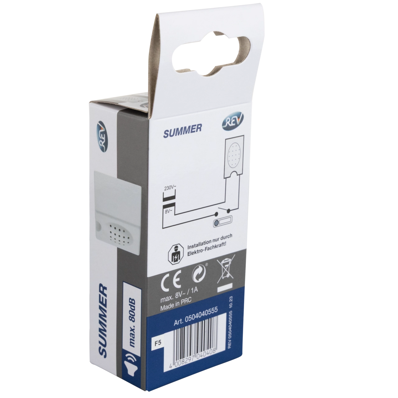 Kleiner kompakter 30 x 45 x 39mm großer elektrischer Signalgeber mit einer Lautstärke von max. 80 dB. Einsetzbar ist dieser Summer in allen Anlagen mit einer Spannung von 8V ~.