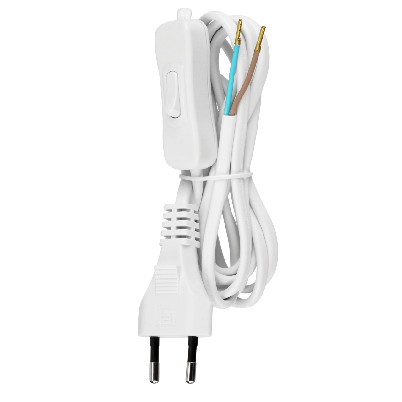• KOMPLETT - 2 m lange wertige Kunststoff-Leitung H03VVH2-F mit flachem Kunststoff-Euro-Stecker und 1-poligem Schalter