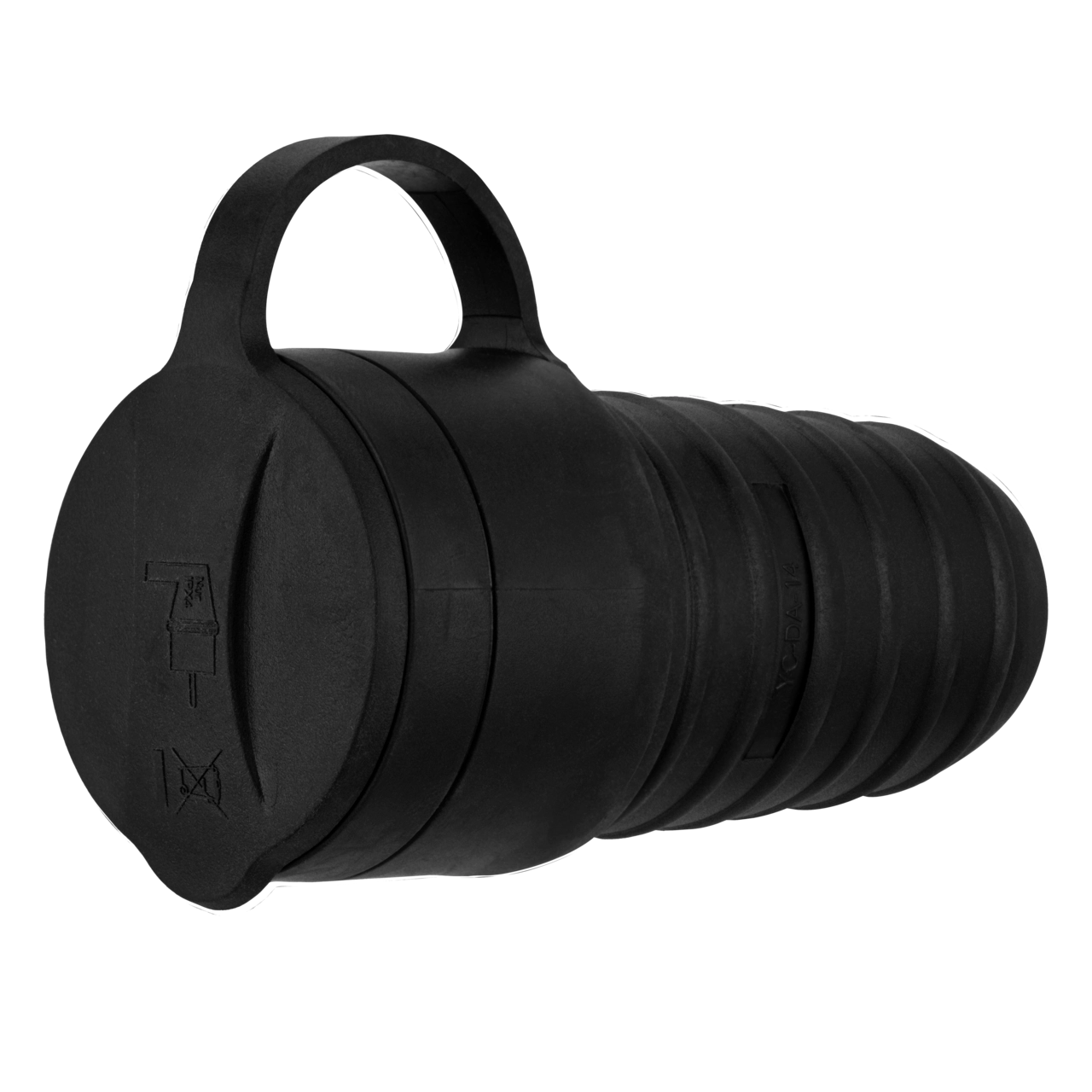Wiederanschließbare, robuste Gummi-Schutzkontakt-Kupplung mit Deckel und zentraler Kabeleinführung für die einfache Nachrüstung, Austausch oder Ersatz. Die Kupplung bietet ein schlag- und stoßfestes Gehäuse aus witterungsbeständigem Gummi, geeignet für die Anwendung im Innen- und Außenbereich.