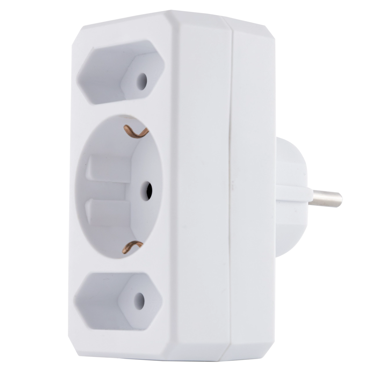 Aus 1 mach 3 - der praktische Steckdosenadapter zum einfachen Erweitern Ihrer Steckdose. Der 3-fach Adapter in sehr kompakter Bauform mit einer Schutzkontakt- und zwei Euro-Steckdosen lässt sich einfach in eine übliche Steckdose stecken. Einsetzbar für alle handelsüblichen Elektro-Geräte mit Schutzkontakt- oder Euro-Stecker, wie z.B. Stehlampen, Küchengeräte, HiFi-Geräte, Spielekonsolen, Ladegeräte, Lichterketten, Rasierer, elektrische Zahnbürste, Uhren, etc.