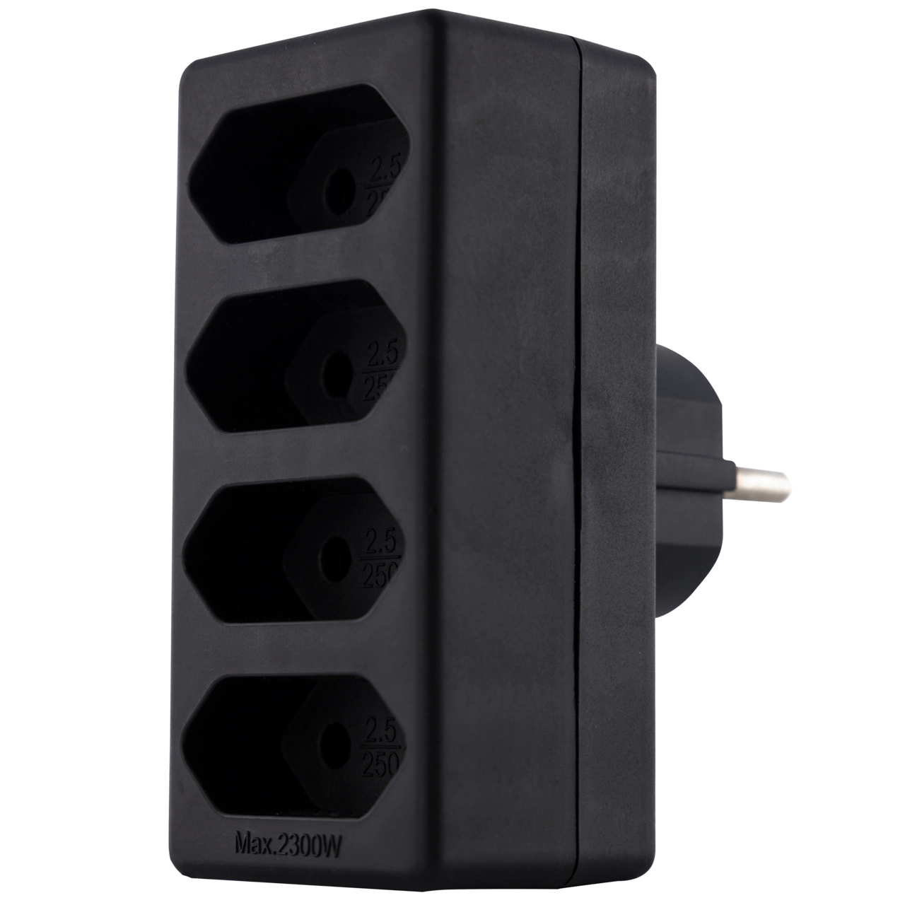Aus 1 mach 4 - der praktische Steckdosenadapter zum einfachen Erweitern Ihrer Steckdose. Der 4-fach Adapter in sehr kompakter Bauform mit vier Euro-Steckdosen lässt sich einfach in eine übliche Steckdose stecken. Einsetzbar für alle handelsüblichen Elektro-Geräte mit Euro-Stecker, wie z.B. Stehlampen, Küchengeräte, HiFi-Geräte, Spielekonsolen, Ladegeräte, Lichterketten, Rasierer, elektrische Zahnbürste, Uhren, etc.