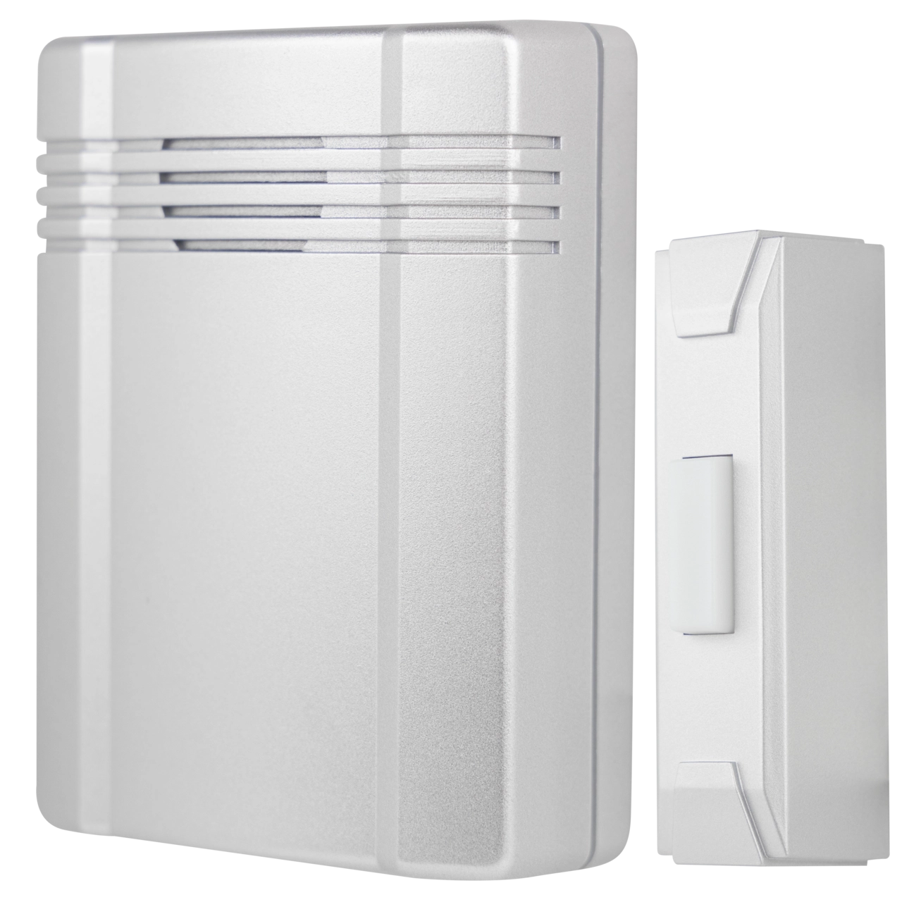 Mit einer Reichweite von 25 m (Freifeld) kann der Empfänger auch in großen Entfernungen zum Klingeltaster platziert werden. Der Taster benötigt dank Funkübertragung keine Verdrahtung mit dem Gong. So können Sie den Klingeltaster ohne großen Aufwand an Ihrer Haustüre im geschützten Außenbereich platzieren, während Sie den Empfänger in einem beliebigen Raum in Ihrem Zuhause platzieren können. Auch können Sie den Gong bei Bedarf in einen anderen Raum mitnehmen.