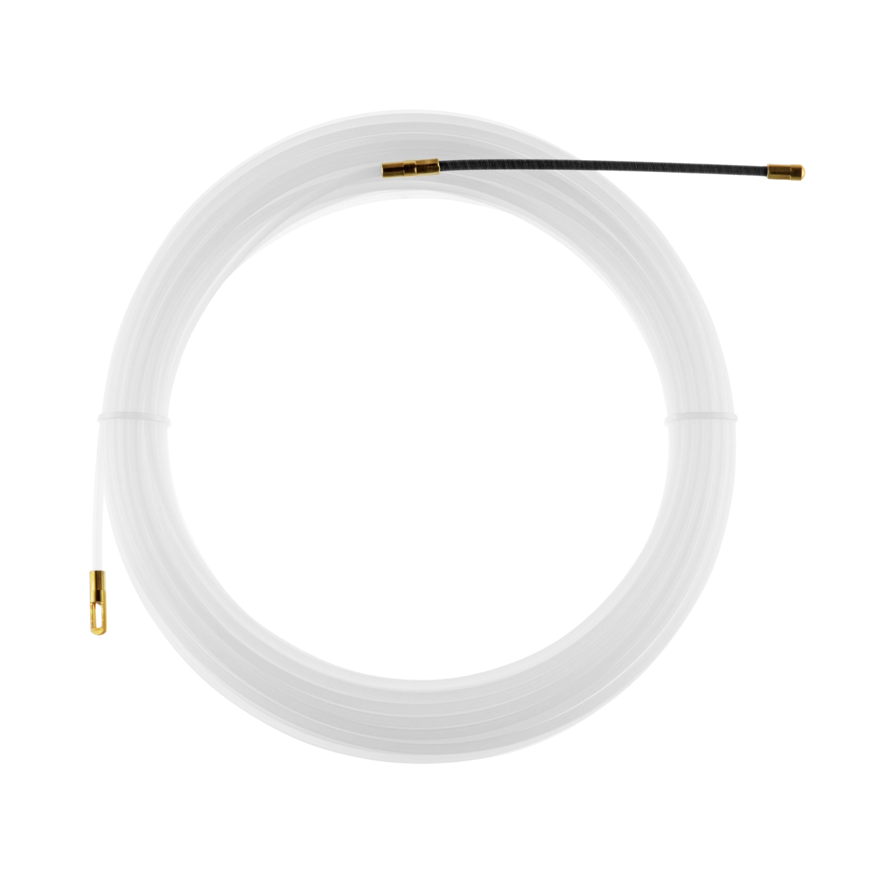 Schmales, flexibles Einziehband aus bruchfestem Kunststoff (Polyamid) mit massiven, abreißfesten Stahlendstücken.