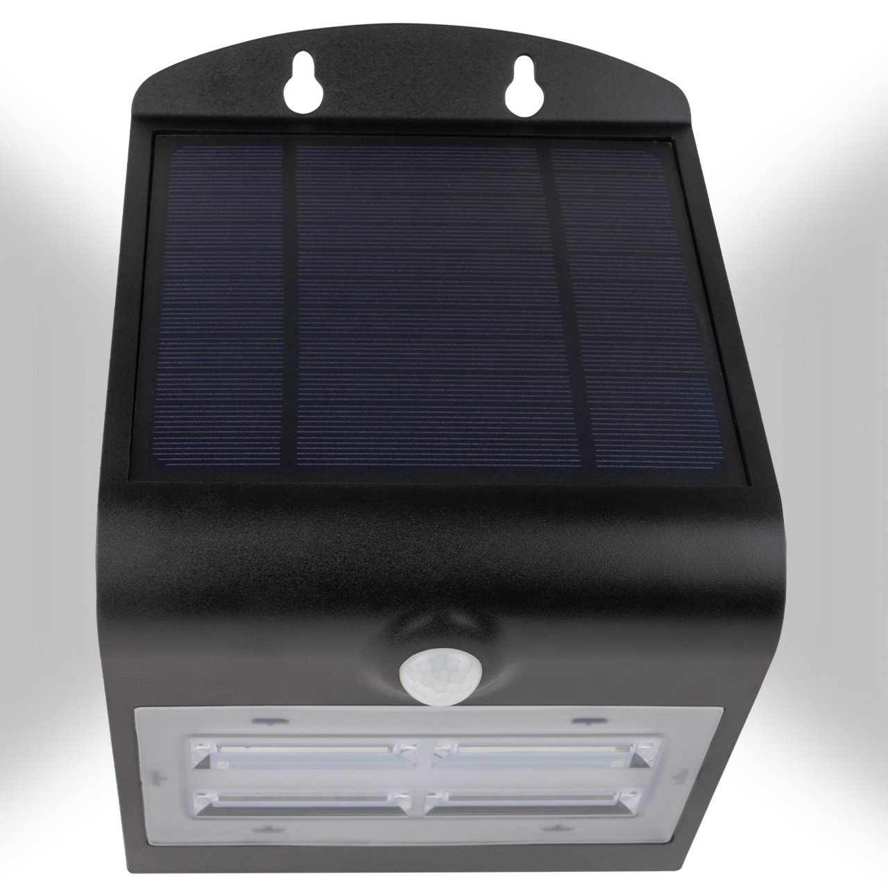 Der mobile LED Solar Strahler Butterfly eignet sich durch seine kompakte und stabile Bauform aus bruchfestem Kunststoff als Wandleuchte im Freien. Die Leuchte wird über ein leistungsstarkes Solarpanel betrieben und sorgt dadurch überall dort für Licht, wo kein Strom verfügbar ist. Der mobile Strahler "ohne Kabel" ist universell einsetzbar und somit das ideale Gerät für rund ums Haus, Garage oder Carport. Über den integrierten Bewegungsmelder wird das Licht automatisch bei Bewegung geschaltet. Damit der Melder nur bei Dämmerung bzw. Dunkelheit schaltet, ist ein Dämmerungssensor (>30Lx) integriert.Mit dem zusätzlichen Schalter am Strahler lässt sich eine indirekte Beleuchtung auf der Geräterückseite Ein- und Ausschalten. Die energieeffiziente LED-Technologie der Leuchte bietet eine nachhaltige und lange Lebensdauer. Sie hat eine effektive Leuchtkraft in einem neutralweißen Licht, womit eine optimale Ausleuchtung Ihres Außenbereiches erreicht wird. Im Lieferumfang ist ein fest verbauter Lithiumionenakku enthalten.